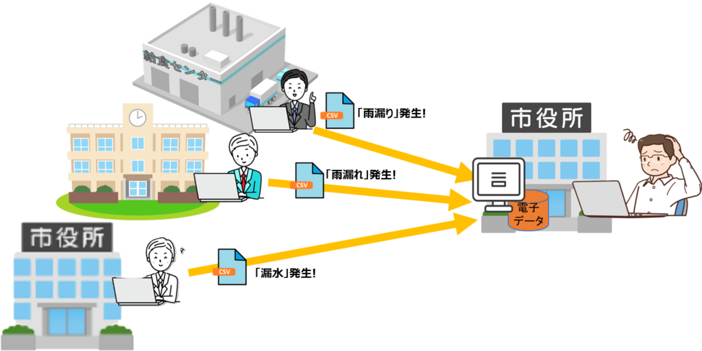デジタル化の波はITの専門家だけでなく、専門家ではない人や組織にも押し寄せてきました。また同時に、情報を受け取る人や組織が自身で電子データを二次利用するために、電子データの提供を受けるニーズも増えてきました。例えば、自治体が民間に作業を発注する際に、その報告等を電子データで提出してもらう様なケースです。そうする事で電子データを受け取る側の作業が軽減されます。ここで一つ大きな問題が発生しました。従来はITの専門家ではない人や組織は自分で電子データを生成していましたから、電子データのデータ仕様の不整合は問題ではありませんでした。これに対し、組織を超えて電子データで情報をやりとりする場合は、電子データの登録者と利用者が異なる状況となりました。ITの専門家ではない人や組織がそれぞれがバラバラにデータ仕様を決めていましたから、データの登録者が異なれば登録されるデータも異なる事態になってしまいました。